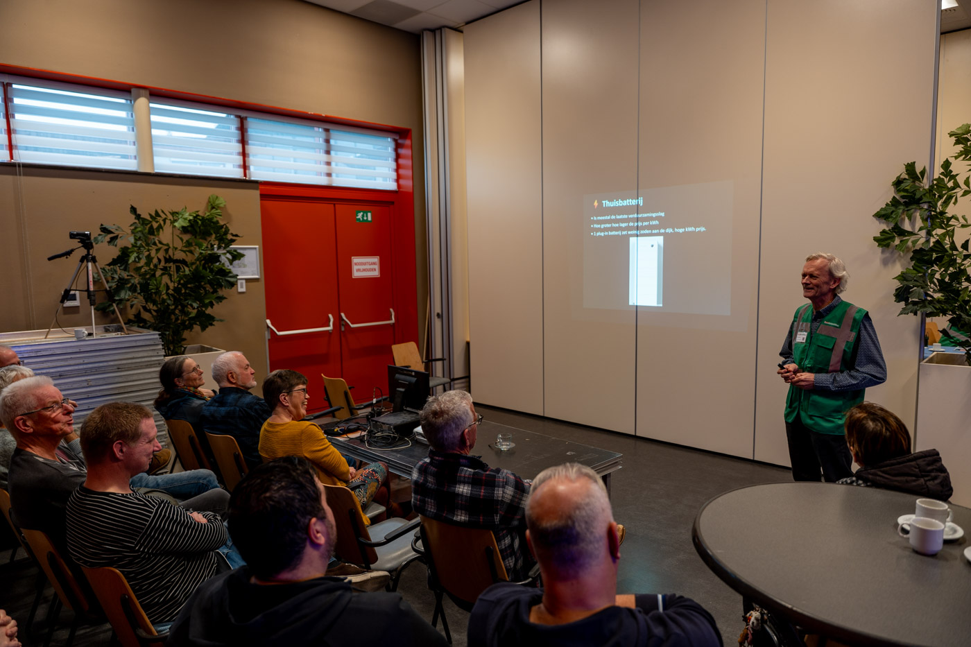 Gedurende de dag vonden meerdere inhoudelijke presentaties plaats. Ruud vertelde over quick-wins bij energiegebruik, Sjaak ging in op isolatie en ventilatie, en Theo behandelde de overstap naar een warmtepomp. De presentatie over ‘duurzame lariekoek’, waarin Theo waarschuwde voor misleidende informatie over verduurzamen, trok veel aandacht. Erik sloot af met een toelichting op het elektriciteitssysteem in huis.